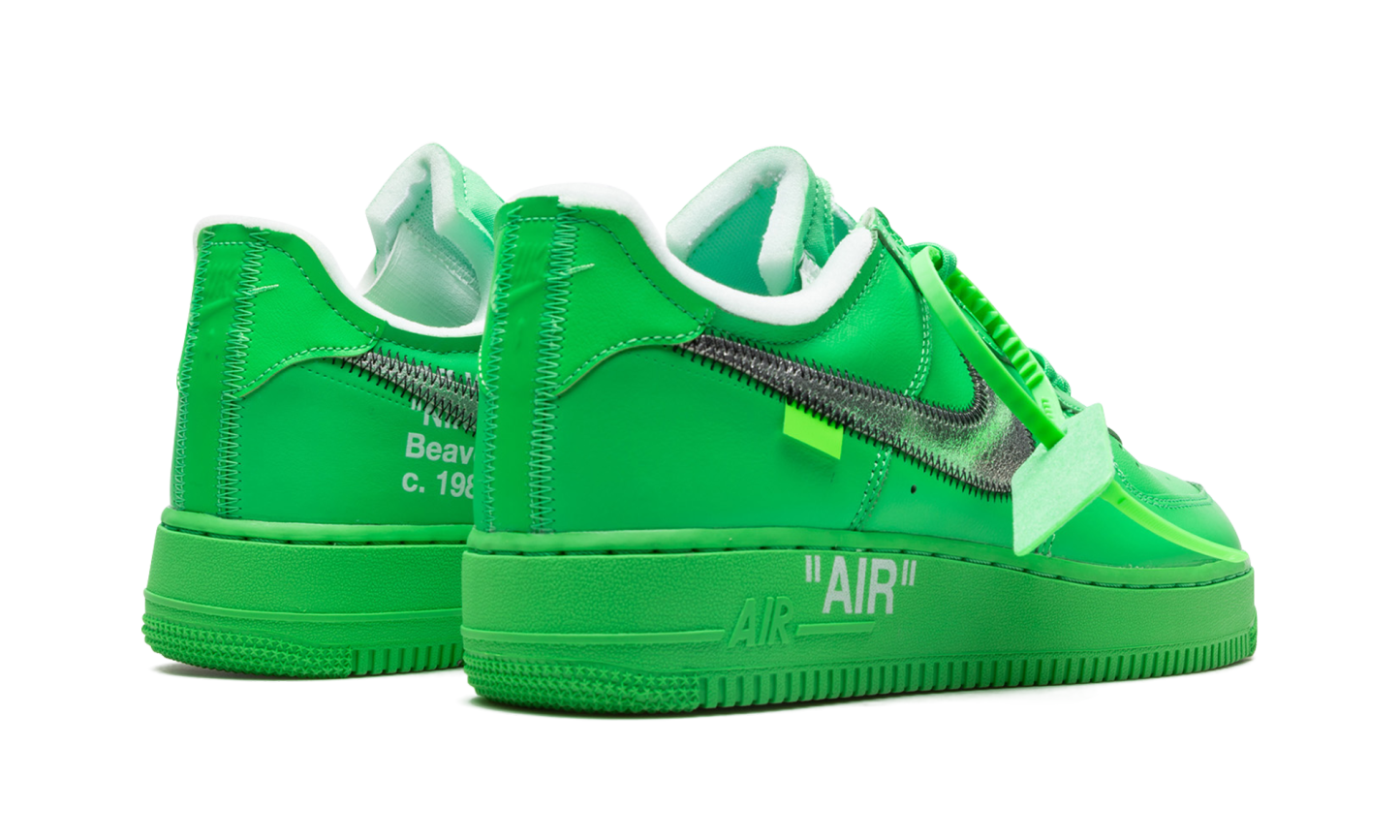 Zielone buty Off-White x Nike Air Force 1 Low „Brooklyn” to efekt współpracy nieżyjącego już Virgila Abloha, jego marki haute couture i odzieży ulicznej, oraz Nike, tworzących retro buty do koszykówki. Kolorystykę „Brooklyn” zapowiedział Tremaine Emory, przyjaciel Abloha i dyrektor kreatywny Supreme, na wiosnę 2022 roku. Buty charakteryzują się monochromatyczną, zieloną kolorystyką z kontrastującym, metalicznym, srebrnym, skórzanym logo Swoosh na bokach. Zielony, plastikowy pasek to charakterystyczny element designu Off-White. Na wewnętrznej stronie buta nadrukowano industrialne detale „Off-White”. Logo „AIR” nadrukowano obok oryginalnego logo „Air” na boku podeszwy środkowej. Data premiery: 13 września 2022 r. Off-White - Brooklyn