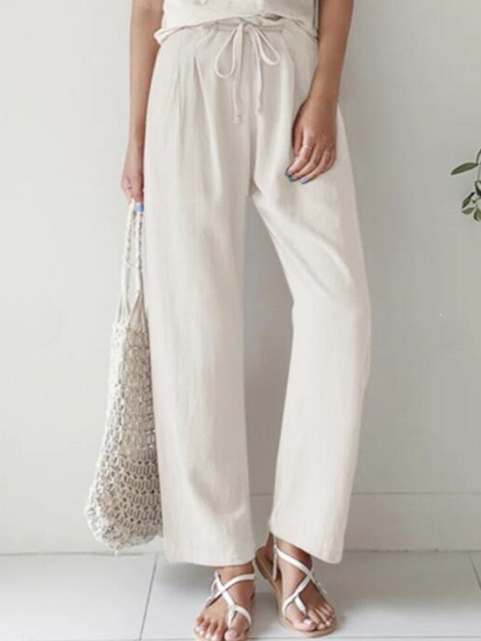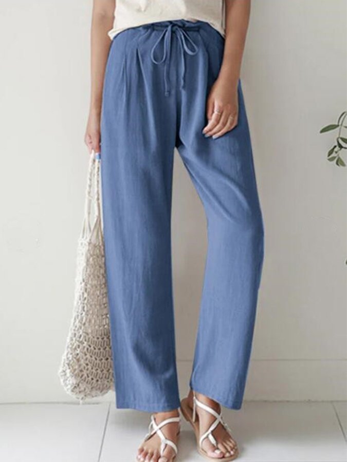 Casual Solid Elastic Waist Trousers